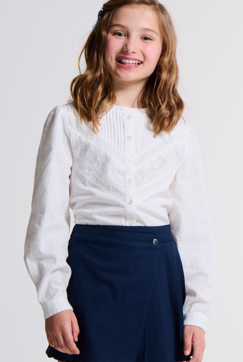 Blusa romántica bordada blanca niña