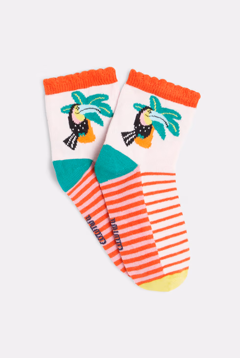Calcetines de bebé niña en rosa con tucán y palmera Catimini