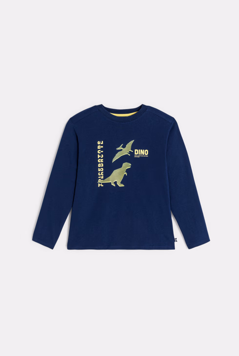 Camiseta de manga larga dinosaurio azul marino niño