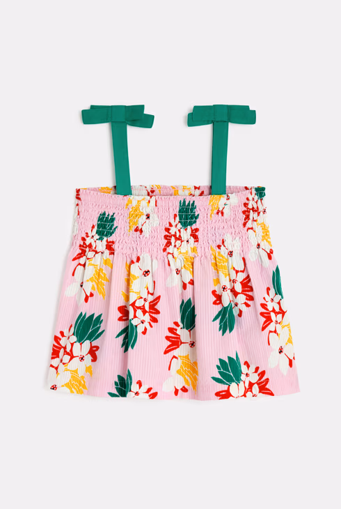 Camiseta de tirantes de niña con motivos con flores exóticas en rosa Catimini