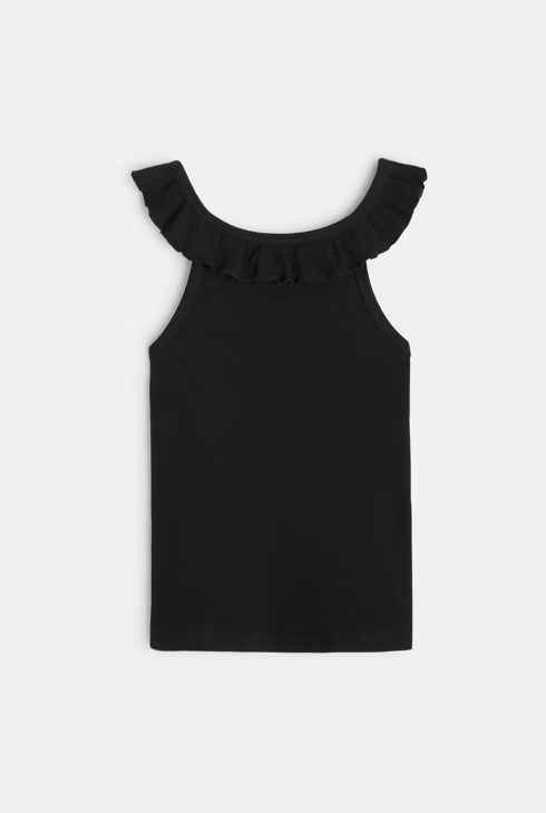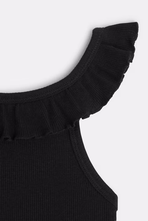 Camiseta de tirantes lisa con cuello de volantes negra niña