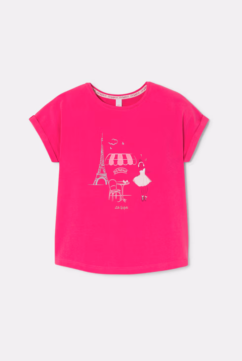 Camiseta dibujo rosa manga corta Lili Gaufrette niña