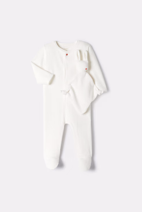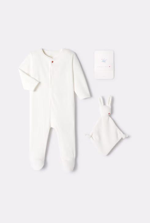 Estuche de pijama y doudou de terciopelo blanco para recién nacido Absorba