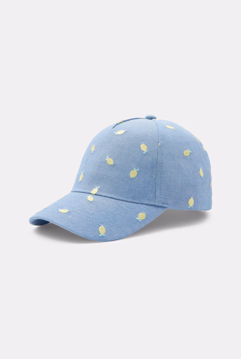 Gorra vaquera de cambray con dibujo de limón para niña