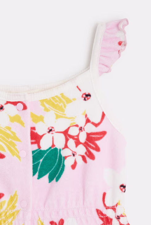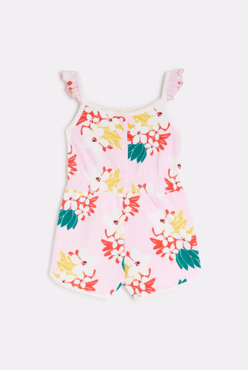 Mono corto de bebé niña en rosa con flores exóticas Catimini