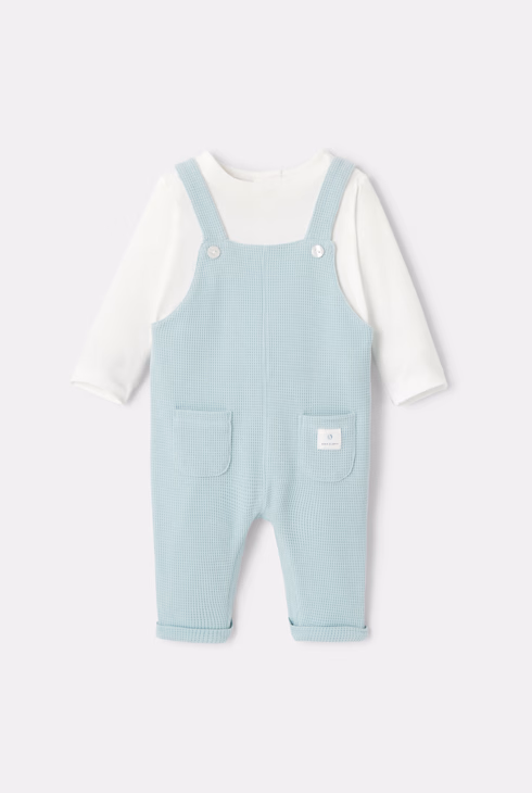 Peto de nido de abeja de algodón con camiseta integrada turquesa recién nacido Absorba